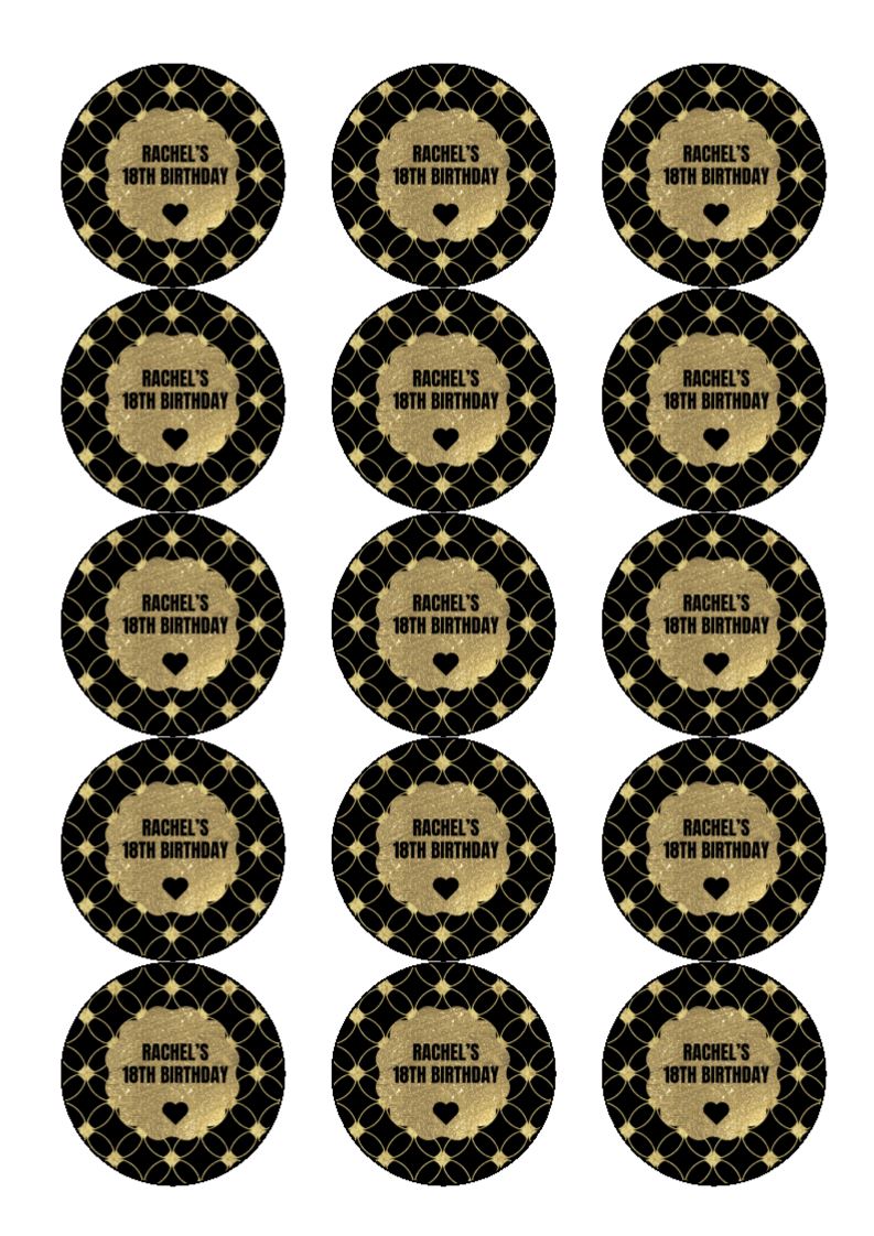 Black And Gold 18th Birthday Cake And Cupcake Toppers Incredible Toppers